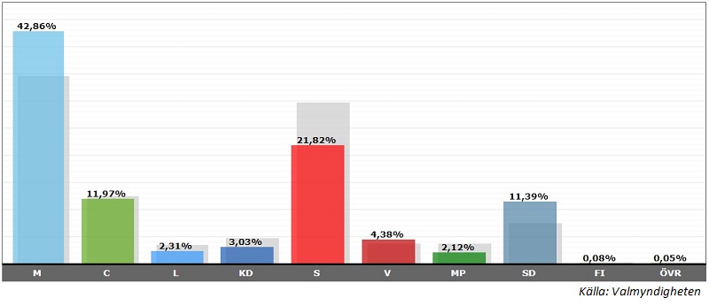 Vi får gratulera oss själva till vårt goda valresultat i kommunvalet. Med ett valdeltagande på 85,82% fick Essungamoderaterna 42,86% av rösterna.